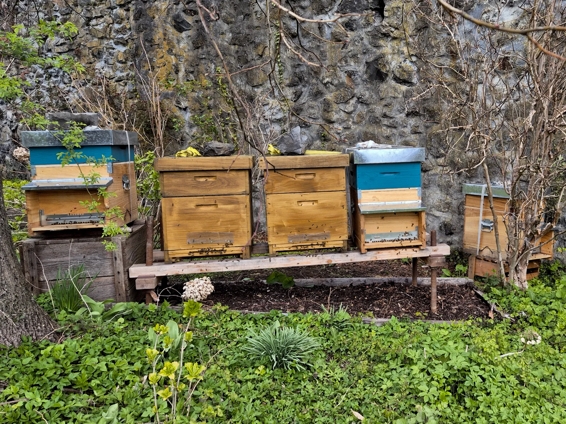 Am Fusse des Schlosses vereinen wir Imkerei und Weinbau. Unsere Bienen sammeln Nektar und Pollen im artenreichen Garten, umgeben von unserem Rebberg.